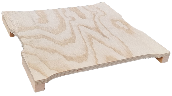 Iläggsskiva av 12 mm plywood och klossar.