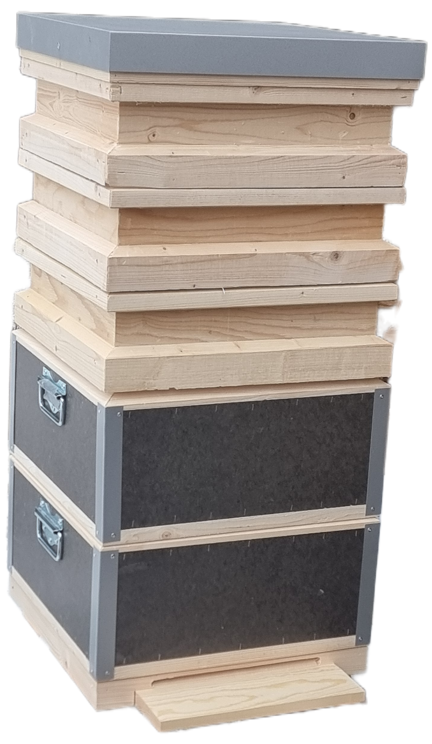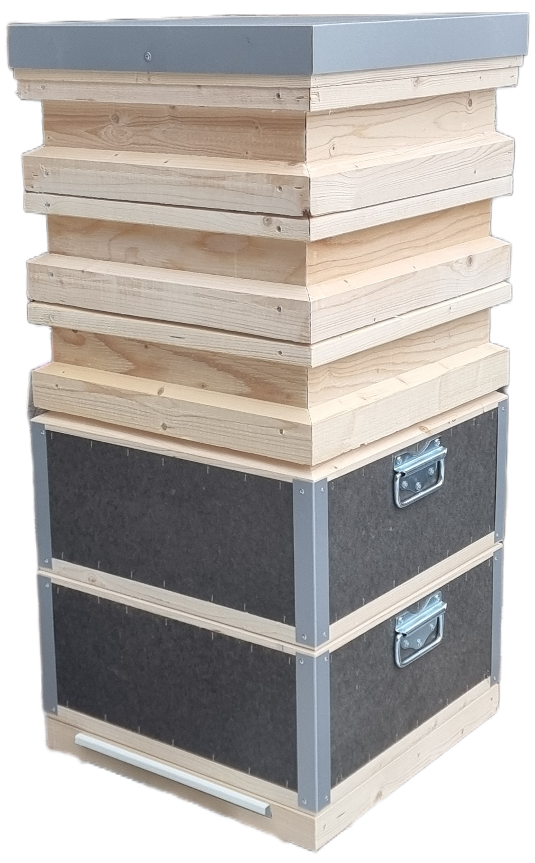 På baksidan finns en varroaplåt som kan dras ut för kontroll av nedfallet av varroakvalster.