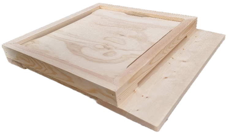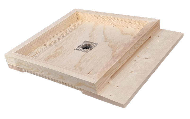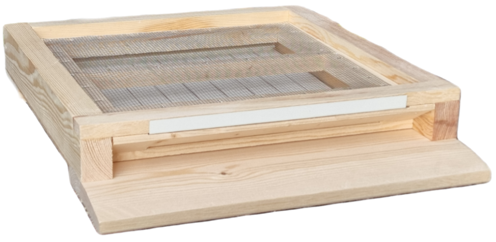 Bina har ett utrymme under iläggsskivan som kan behövas då bina sitter trångt eller då man flyttar kupan. Det är också praktiskt vid varroakontroll då det finns plats för ett varroagaller. Ventilationshål med rostfritt galler.