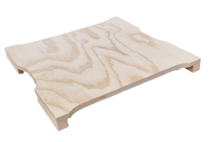 Iläggsskiva av 12 mm plywood och klossar.