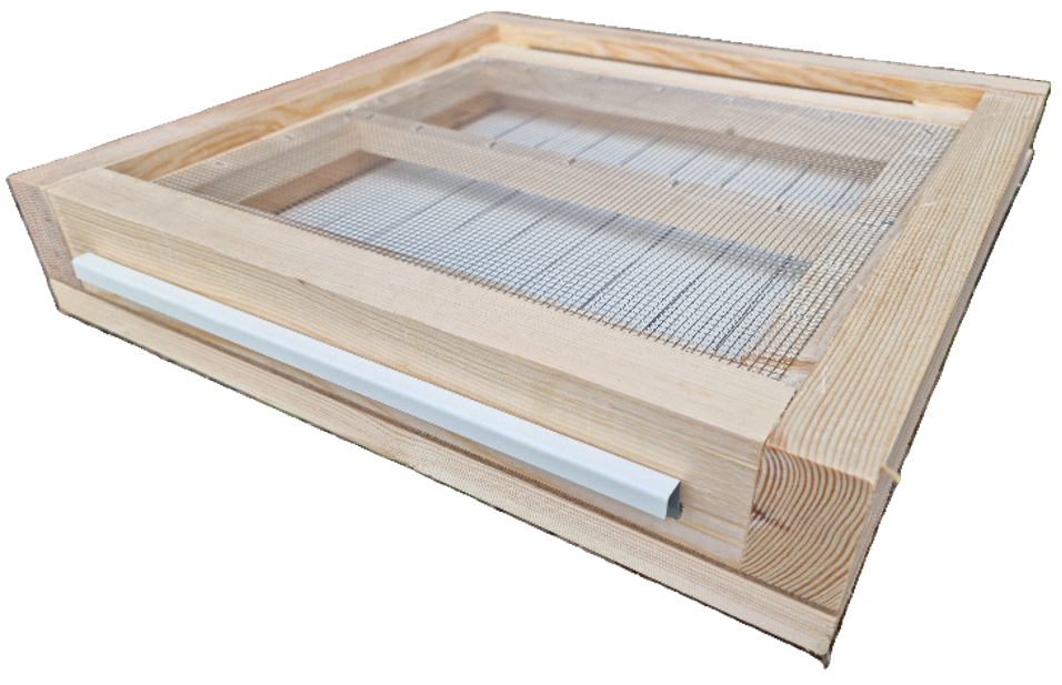 På baksidan finns en varroaplåt som kan dras ut för kontroll av nedfallet av varroakvalster.